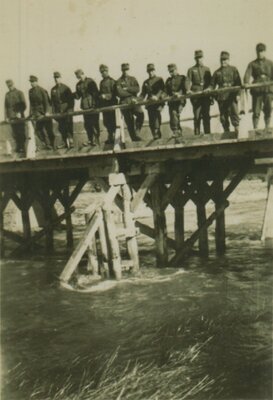 Pioniersolaten stehen auf der hölzernen Ahrbrücke