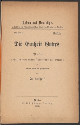 Die Einheit Gottes : Rede gehalten zum ersten Jahresfeste des Vereins im oberen Saale der Reichshallen / von Dr. Kalthoff