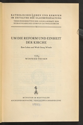 Um die Reform und Einheit der Kirche : zum Leben und Werk Georg Witzels / von Winfried Trusen