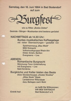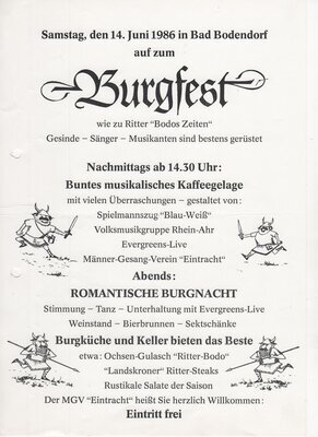 Einladung zum Bad Bodendorfer Burgfest im Jahr 1986