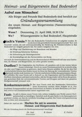 Einladung zur Gründungsversammlung des Heimat- und Bürgerverein Bad Bodendorf