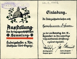 Einladung "Ausstellung der kriegsgeschichtlichen Sammlung, Ludwigshafen a. Rhn."