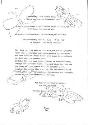 Einladung Mainzer Carneval Verein 1988 - Aktivenfeier mit Festbankett im Jubeljahr (150 Jahre)