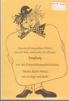 Einladung Mainzer Ranzengarde 1997 - Empfang vor der Fernsehfastnachtssitzung "Mainz bleibt Mainz, wie es singt und lacht"