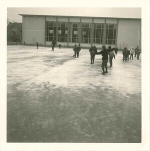 Vorplatz Turnhalle "An der Seilerbahn" als Eisbahn, Bendorf, 1960