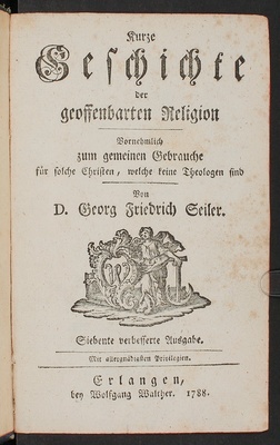 Kurze Geschichte der geoffenbarten Religion : vornehmlich zum gemeinen Gebrauche für solche Christen, welche keine Theologen sind / von D. Georg Friedrich Seiler