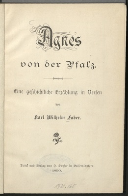 Agnes von der Pfalz : Eine geschicthliche Erzählung in Versen / von Karl Wilhelm Faber