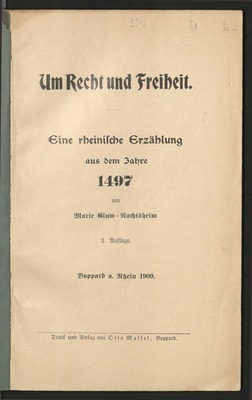 Um Recht und Freiheit : eine Rheinische Erzählung aus dem jahre 1497 / von Maria Glum-Nachtsheim
