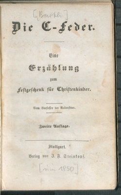 Die C-Feder : eine Erzählung zum Festgeschenk für Christenkinder / vom Verfasser der Rabenfeder