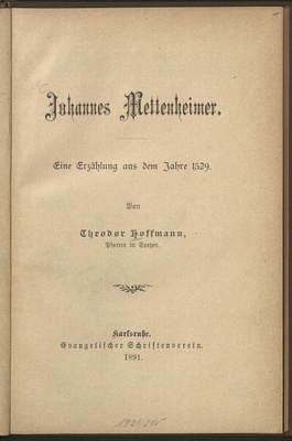 Johannes Mettenheimer : eine Erzählung aus dem Jahre 1529 / von Theodor Hoffmann