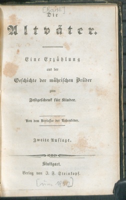 Die Altväter : Eine Erzählung aus der Geschichte der mährischen Brüder zum Festgeschenk für Kinder / Von dem Verfasser der Rabenfeder