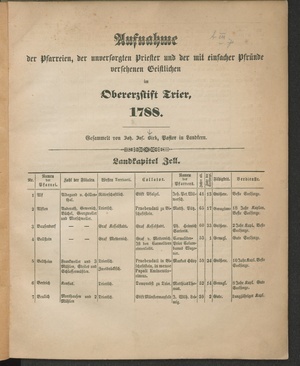 Aufnahme der Pfarreien, Kaplaneien und unversorgten Geistlichen im Nieder-Erzstifte Trier, 1788