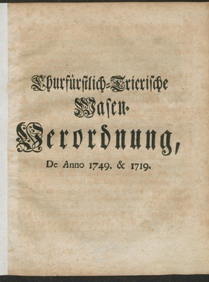 Churfürstlich-Trierische Wasen-Verordnung, De Anno 1749. & 1719