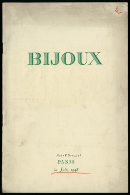 Catalogue des importants bijoux : bagues émeraudes saphir et rubis, perles boutons blanche et noir, rangs de perles fines : dont la vente aux enchères publiques aura lieu Hôtel Drouot, Salle No 7, le jeudi 10 juin 1943 / commissaire-priseur: Étienne Ader, expert: M. Boucheron