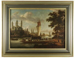 Ansicht des Domes zu Speyer vom gegenüberliegenden Rheinufer gesehen (mit Rheinfähre)