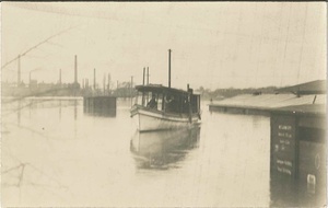 Fährboot bei Hochwasser im Bendorfer Hafen, 1919/1920