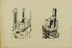 Junger Mann auf Balkon / Junge Frau auf Balkon