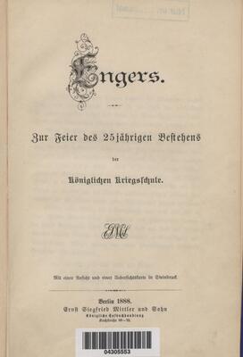 Engers : zur Feier des 25jährigen Bestehens der Königlichen Kriegsschule