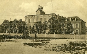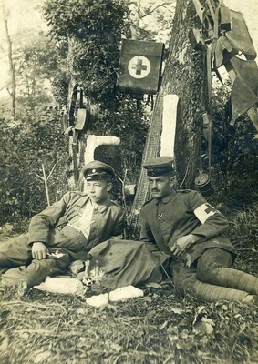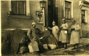 "Wohlfahrts-Postkarte: Soldaten vor Feldpostamt"