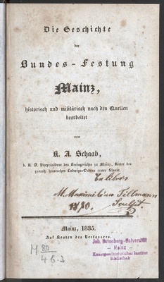 Die Geschichte der Bundes-Festung Mainz, historisch und militärisch nach den Quellen bearbeiteit / von K. A. Schaab