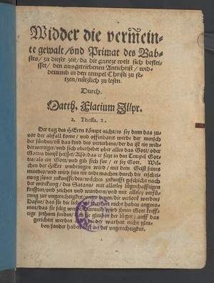 Widder die vermeinte gewalt vnd Primat des Babstes zu dieser zeit da die gantze welt sich befleisset den ausgetriebenen Antichrist widderumb in den tempel Christi zu setzen nuetzlich zu lesen. / Durch. Matth.Flacium Jllyr.