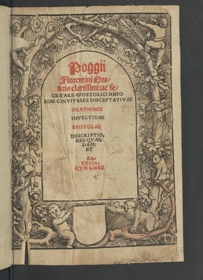 Poggii Florentini Oratoris clarissimi: ac secretarii Apostolici Historiae Convivales Disceptativae Orationes Invectivae Epistolae Descriptiones Qvaedam: Et Faceciarvm Liber