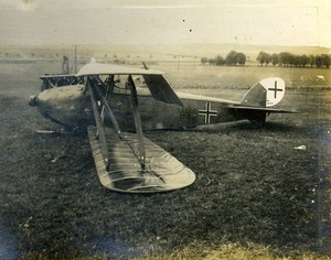 Fotopostkarte "Abgeschossenes engl. Flugzeug bei Sainghin"