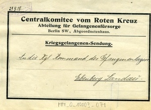 Formular für eine Kriegsgefangenensendung des Roten Kreuzes
