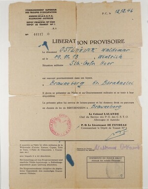 Entlassungsformular der französischen Militärregierung für Wehrmachtangehörige: Waldemar Ostländer