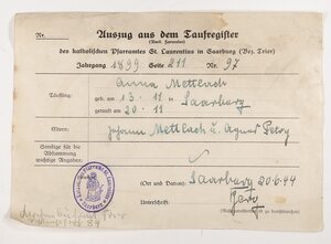 Auszug aus dem Taufregister für Anna Mettlach