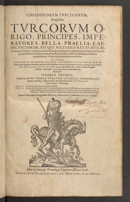 Chronicorum Turcicorum, in quibus diversorum regnorum, urbium, insularum, vastationes, et occupationes, a diversis autoribus exponuntura... tomus... / Philippus Lonicerus