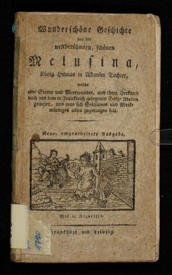 Wunderschöne Geschichte von der weltberühmten, schönen Melusina : König Helmas in Albanien Tochter, welche eine Sirene und Meerwunder, und ihrer Herkunft nach aus dem in Frankreich gelegenen Berge Adelon gewesen, und was sich Seltsames und Merkwürdiges allda zugetragen hat.