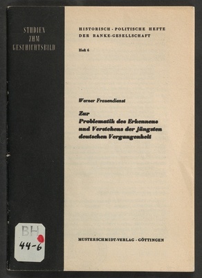 Zur Problematik des Erkennens und Verstehens der jüngsten deutschen Vergangenheit / Werner Frauendienst