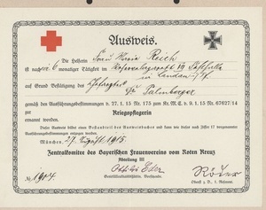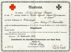 Ausweis des Bayerischen Frauenvereins vom Roten Kreuz