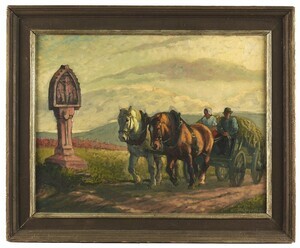 Pferdefuhrwerk am Schwarzen Kreuz bei Freinsheim