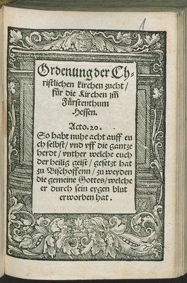 Ordenung der Ch=||ristlichen Kirchen zucht/|| für die Kirchen j[m]m || Fürstenthum Hessen. ... / [Mag. Adam Fulda ; D. Thylomannus Schnabel ; Johannes Kymeus ...]