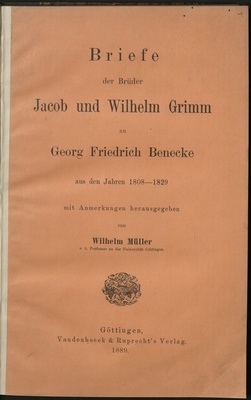 Briefe der Brüder Jacob und Wilhelm Grimm an Georg Friedrich Benecke : aus den Jahren 1808 - 1829 / mit Anmerkungen hrsg. von Wilhelm Müller