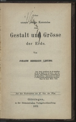 Ueber unsere jetzige Kenntniss der Gestalt und Grösse der Erde / Johann Benedict Listing