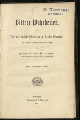 Bittere Wahrheiten : eine unerwartete Beleuchtung der "Ernsten Gedanken" des Herrn Oberstlieutenant von Egidy / von Bornemann