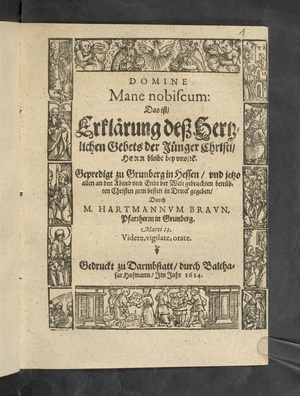 Domine mane nobiscum : das ist Erklärung deß hertzlichen Gebets der Jünger Christi Herr bleibe bey uns / gepredigt ... durch Hartmann Braun