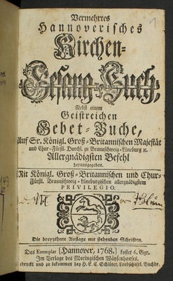 Vermehrtes Hannoverisches Kirchen-Gesang-Buch : Nebst einem geistreichen Gebet-Buche ...