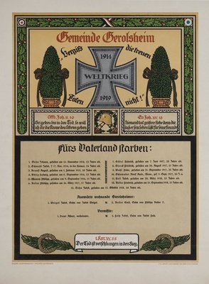 Totenblatt für die Gefallenen der Gemeinde Gerolsheim