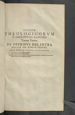 De Operibvs Dei Intra Spativm Sex Diervm Creatis : Opvs Tres In Partes Distinctvm. I. [...], hoc est, de rebus inuisibilibus. II. [...], id est, de rebus visibilibus. III. [...], déque aliis ad eum pertinentibus, ad lapsum vsque: eòque & de humano connubio ad finem vsque mundi duraturo
