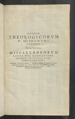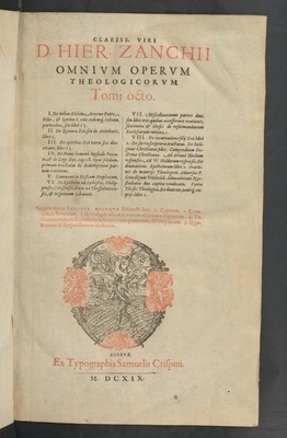 Hier. Zanchii Omnium operum theologicum tomi 8 : singulis tomis ind. 5 subjuncti sunt