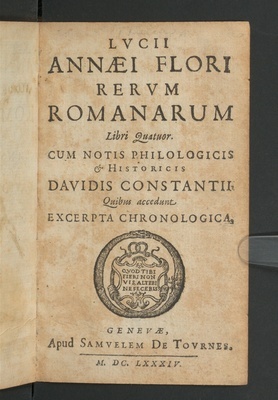 Lucii Annaei Flori rerum Romanarum libri quatuor / cum notis philologicis et historicis Davidis Constantii. Quibus accedunt excerpta chronologica