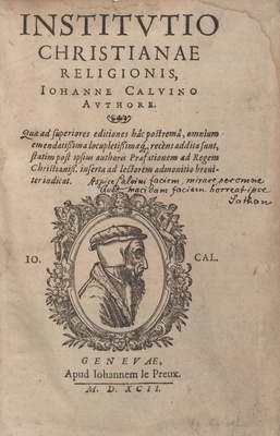 Institvtio Christianae Religionis : Quae ad superiores editiones hac postrema, omnium emendatißima locupletißimaq[ue], recens addita sunt, statim post ipsius authoris Praefationem ad Regem Christianiß. inserta ad lectorem admonitio breuiter indicat / Iohanne Calvino Avthore