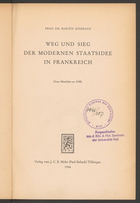 Weg und Sieg der modernen Staatsidee in Frankreich : (vom Mittelalter zu 1789) / Prof. Dr. Martin Göhring