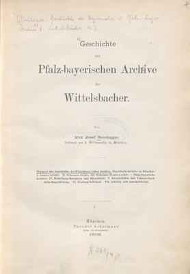 Geschichte der bayerischen und pfalz-bayerischen Archive der Wittelsbacher / Max Josef Neudegger