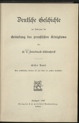 Deutsche Geschichte im Zeitraum der Gründung des preußischen Königtums / von H. v. Zwiedineck-Südenhorst
