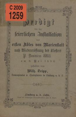 Predigt bei der feierlichen Installation des ersten Abtes von Marienstatt nach Wiedereröffnung des Klosters P. Dominicus Willi am 8. Mai 1890 / gehalten von Wilh. Tripp